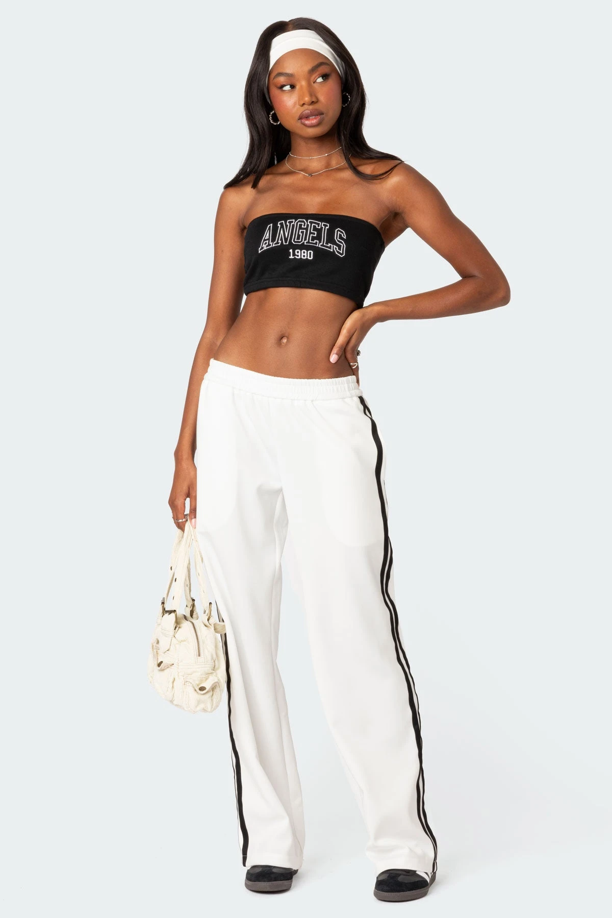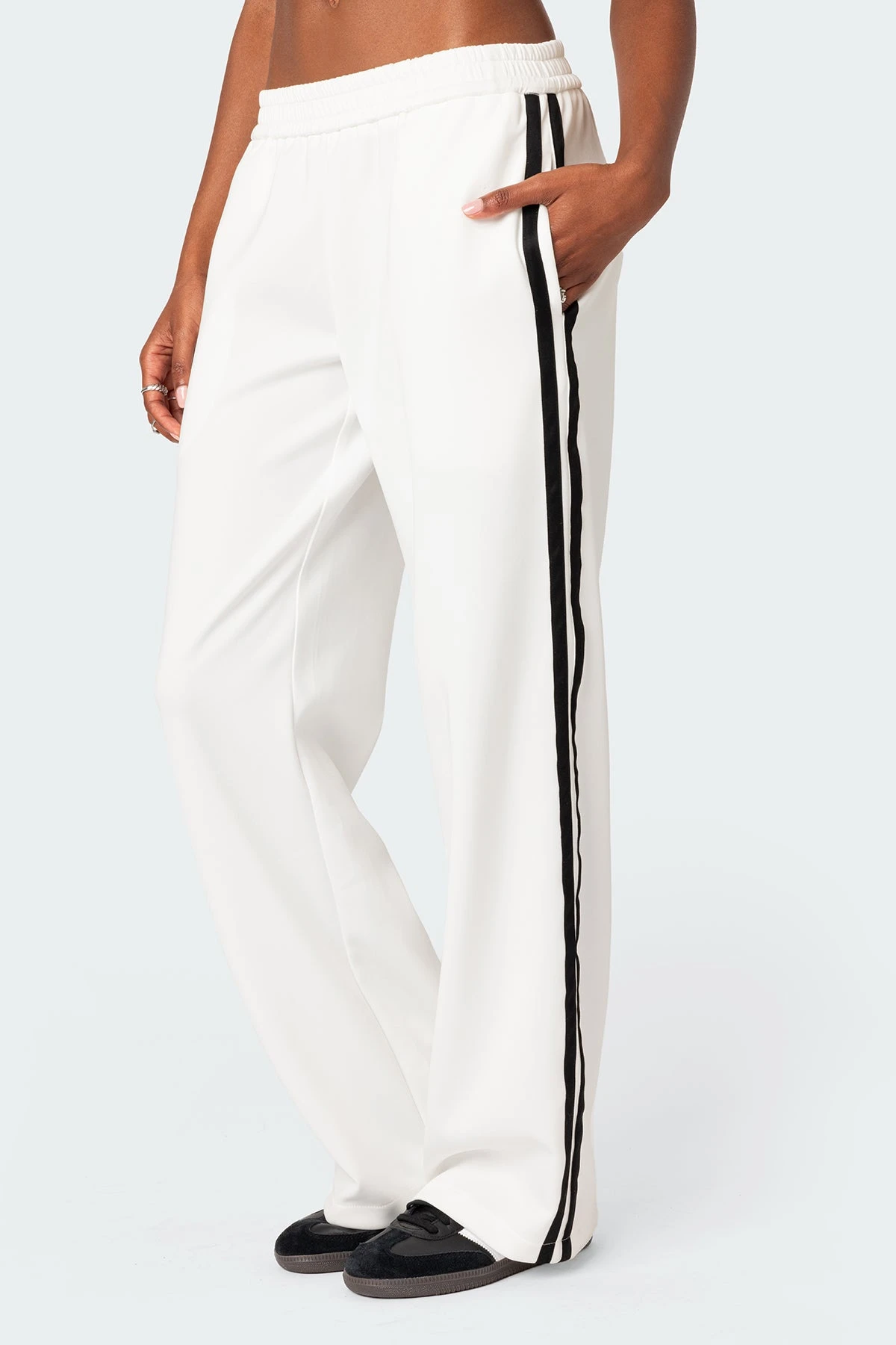 - Contrast side stripe detailing